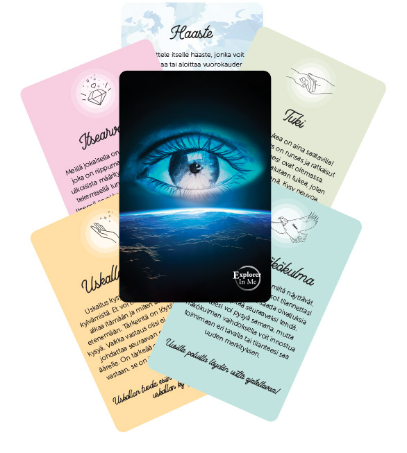 Olen luonut Tutkimusmatkailijan kortit inspiraatioksi ja ohjaavaksi työkaluksi, jolla voit saada sisäistä rauhaa ja uusia näkökulmia elämääsi. Olen valinnut kortteihin teemoja, jotka parhaiten tukisivat sinua elämäsi matkalla niin itsesi kuin elämäntilanteesi ymmärtämisessä. Erityisesti elämän muutostilanteet haastavat, jolloin tuki ja uudet näkökulmat ovat tarpeen. Toivon, että kortit toimivat voimaannuttavana tukena oman muutosvoimasi tunnistamisessa ja innoittavat sinua uudenlaiseen toimintaan oman elämäsi parhaaksi.